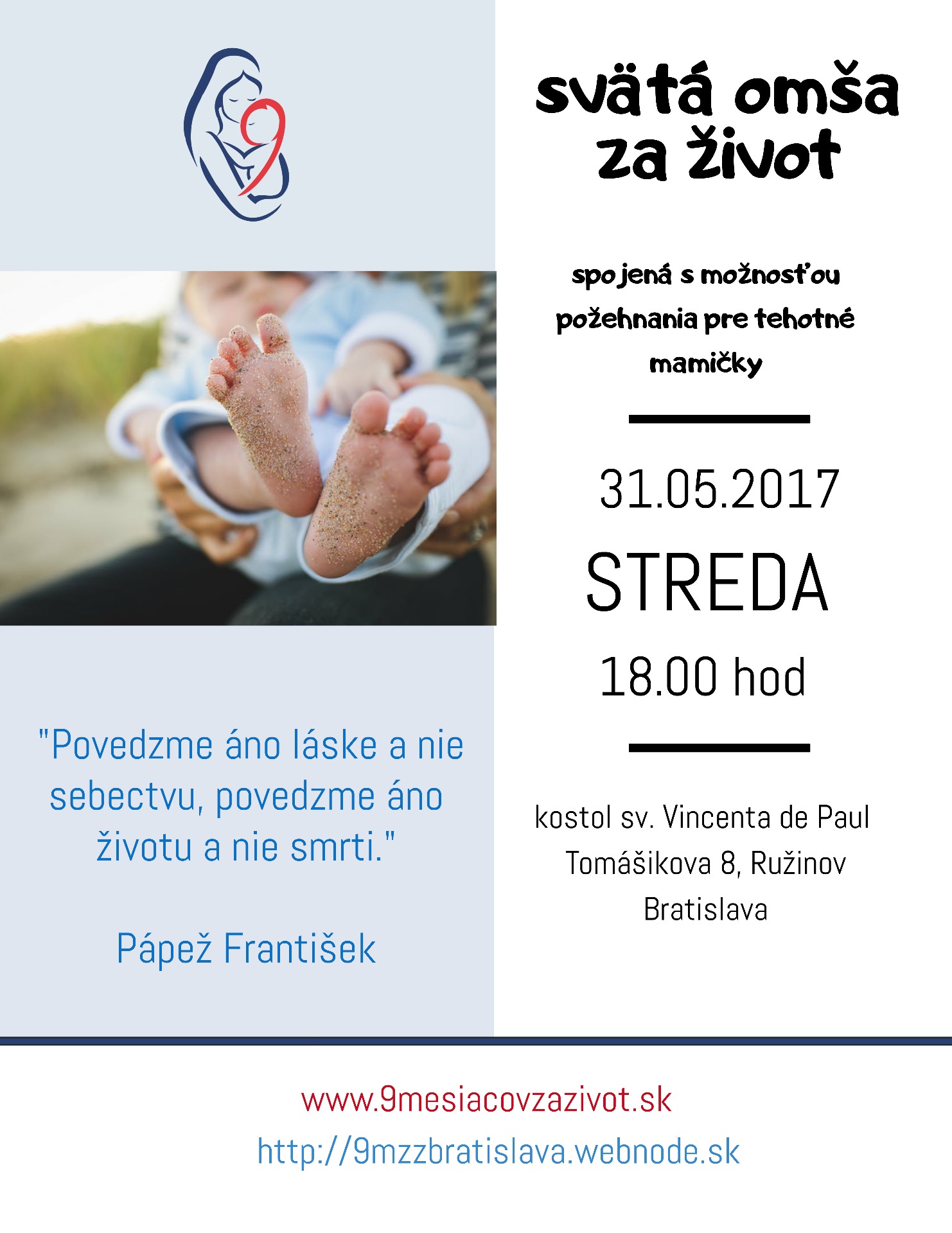 Pred svätou omšou od 17:30 sa budeme modliť sv. ruženec s rozjímaniami za život. V závere svätej omše bude tehotným mamičkám udelené osobité požehnanie.
